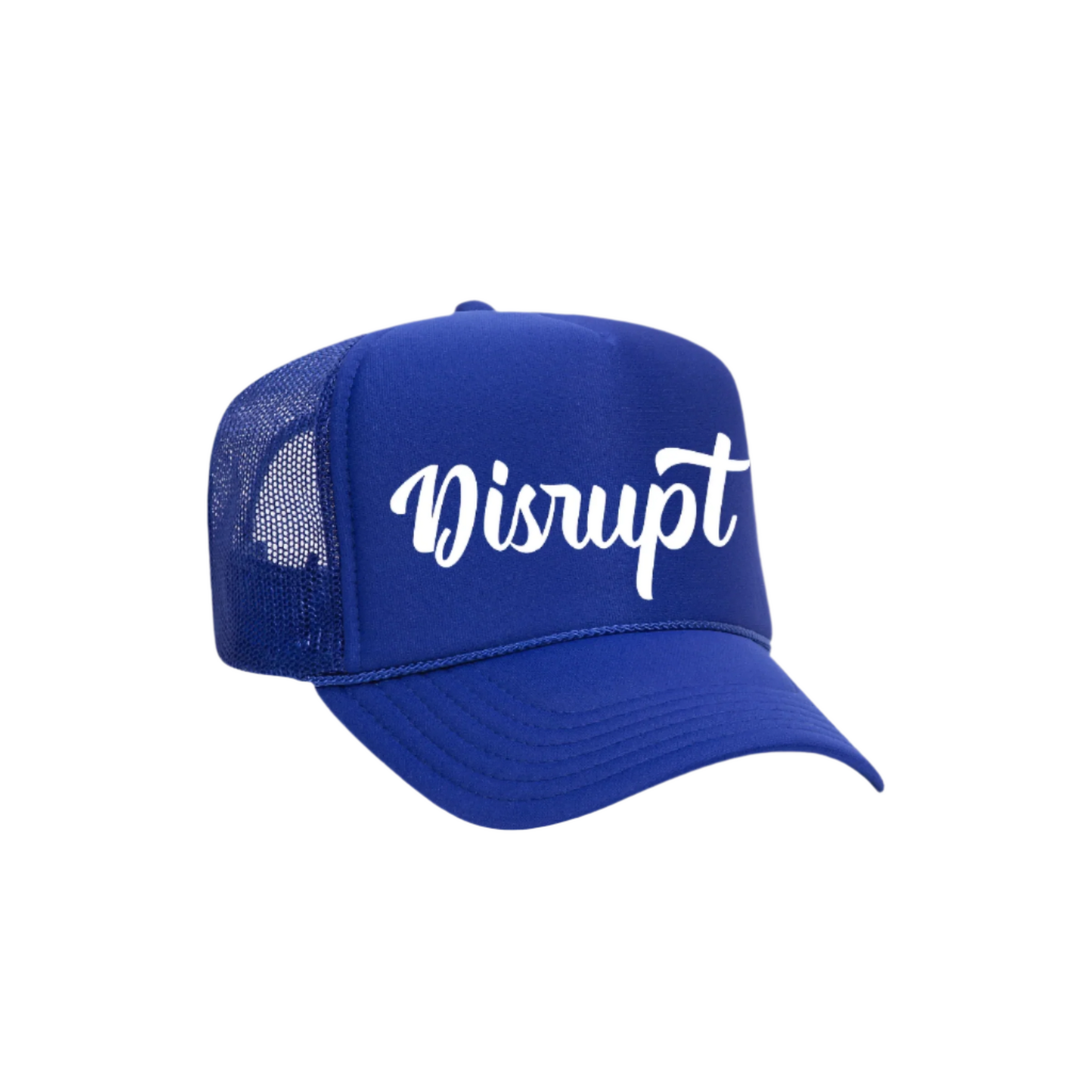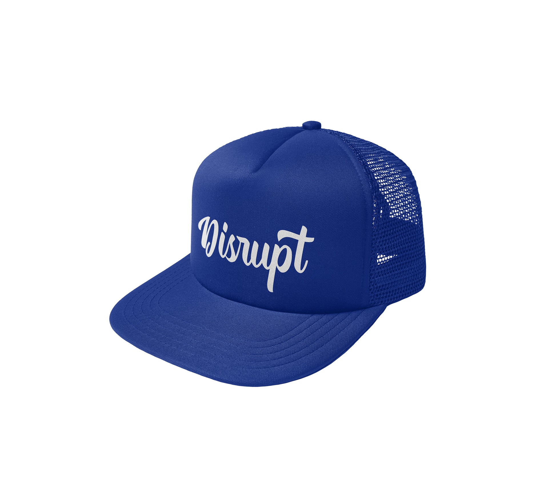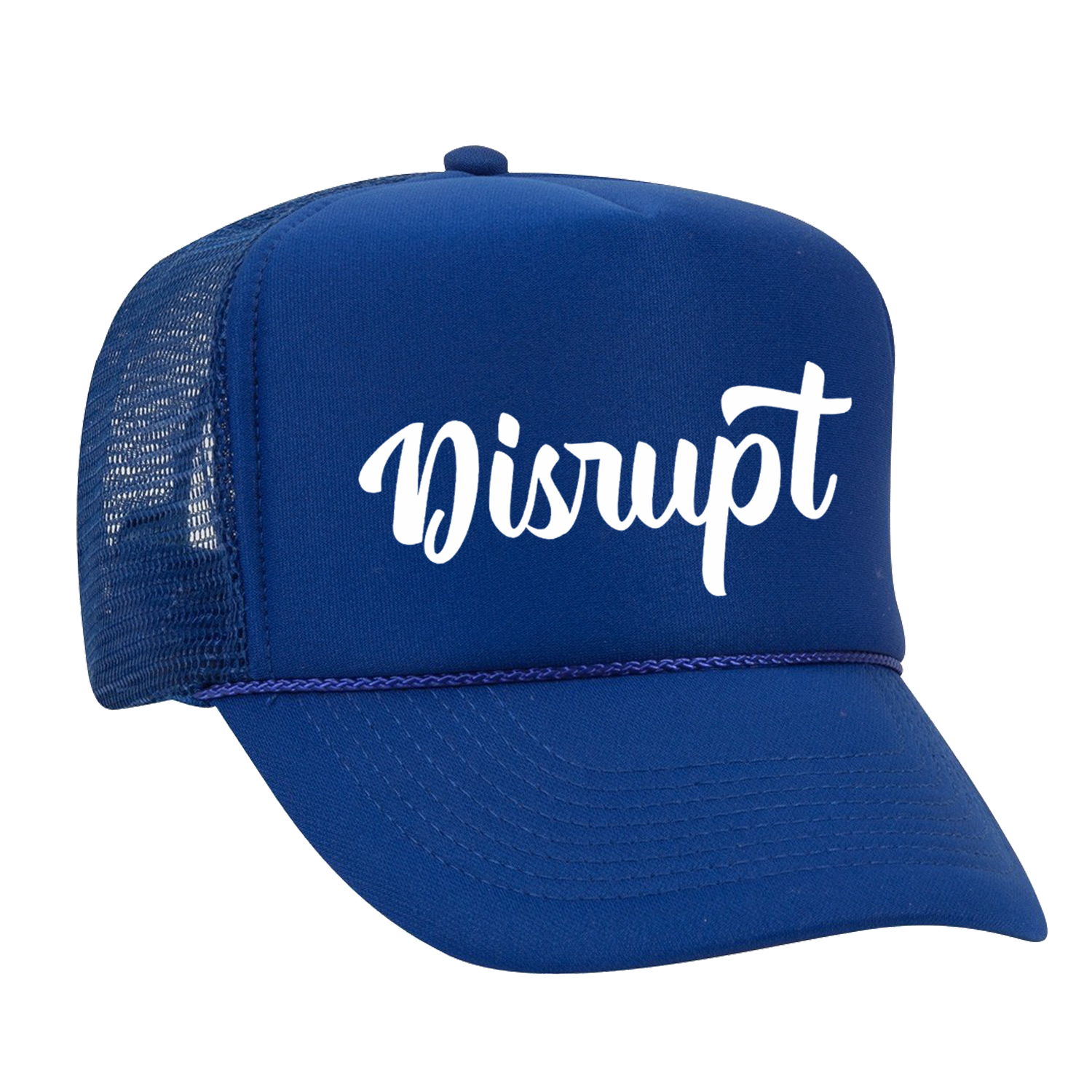 Classic 5-panel trucker hat with a snapback closure, curved bill, with our classic Disrupt high quality script font on the front. One size fits all.